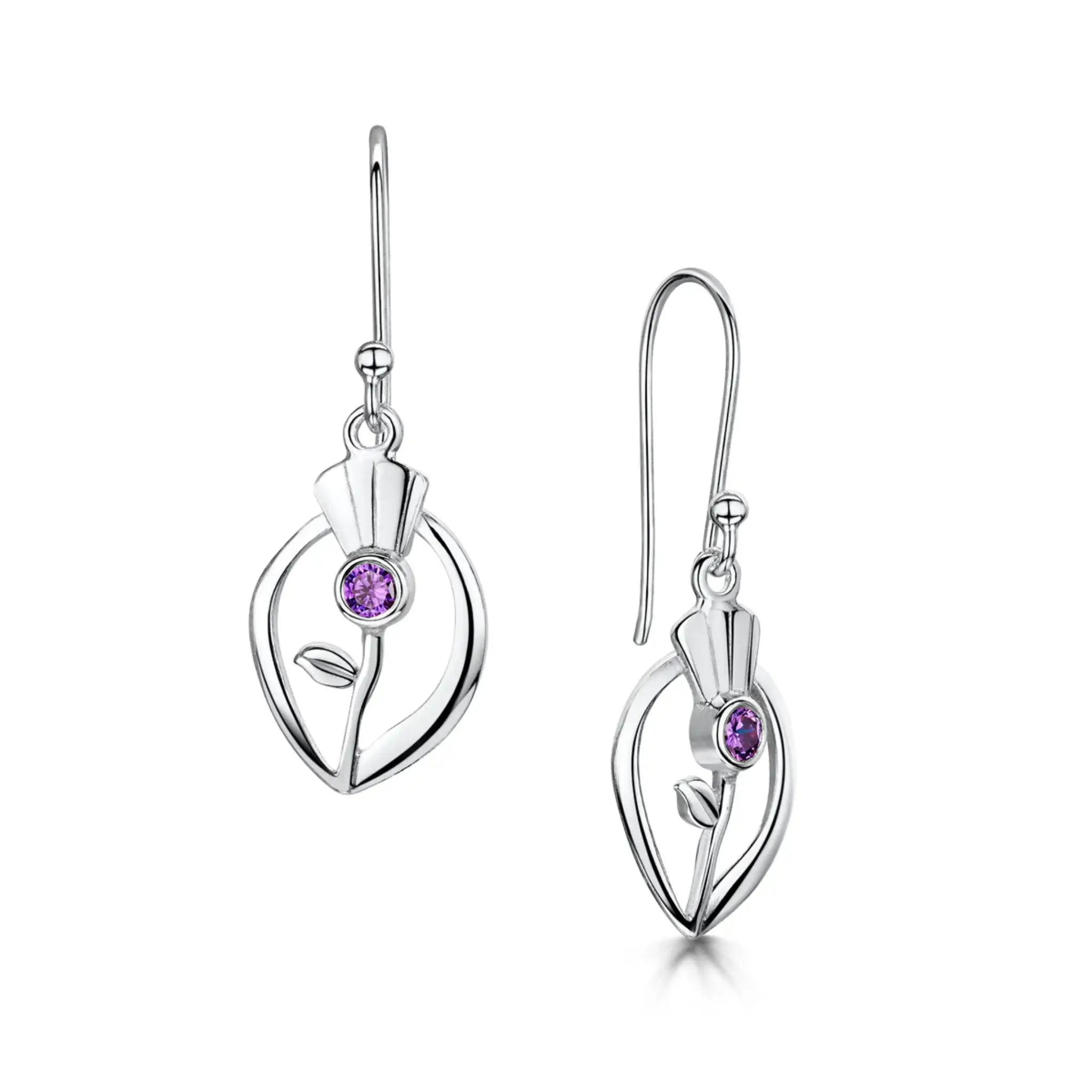 A beautiful and contemporary evocation of that most romantic of Scottish symbols, these Scottish Thistle earrings each feature an eye-catching purple Amethyst crystal set in stunning Sterling Silver.